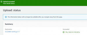 Upload succeeded! Of course, trying to access that file online at the moment only yields an Access Denied error, but that was to be expected. I haven't completed all the required steps yet.