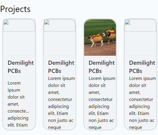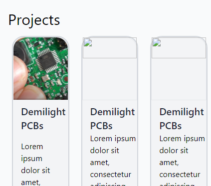 I learned some (but not all) about {{ range }} operator used to list pages, and that the summary layout can be distinct to each type of content (as well as having a default or fallback format, which is handy). So I created a small summary format for small projects, and embedded a few sample ones on the homepage. By using the {{ .RelPermalink }} template, each card on the homepage links to the appropriate piece of content.