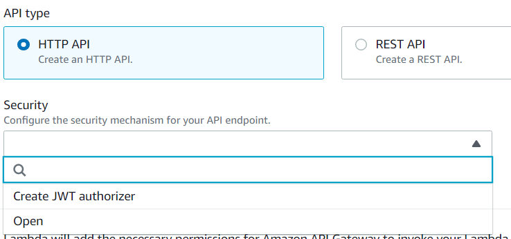 As for what the difference is between an HTTP API and a REST API in this context, I'll have to consult Amazon's Choosing an API Type documentation, and the related Choosing Between HTTP APIs and REST APIs document. Given that both options appear to allow requests from public HTTP endpoints, and the HTTP API is described as "lightweight" (as opposed to the REST API's "feature rich"), I think that's where I'll start.